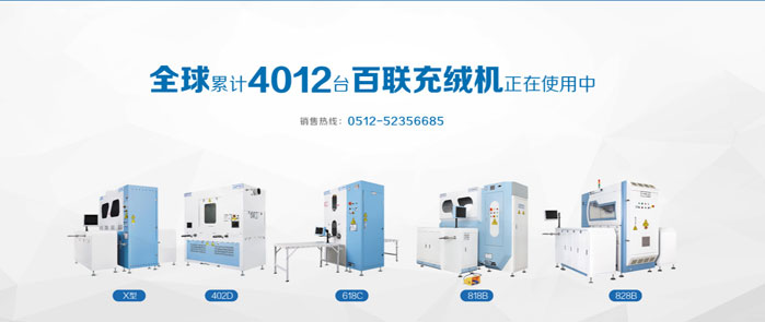 百聯展品:X型模塊化充絨機、402D全自動絨棉一體機、618A全自動四口流量法充絨機