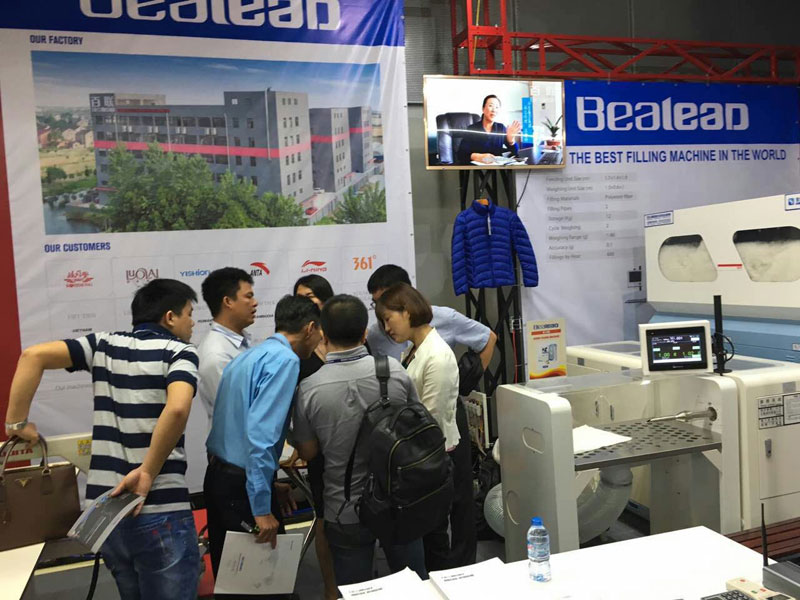 本屆展會上,百聯展位重點展示并推介了818B高性能自動充絨機、軟件產品IEBOX生產現場管理解決方案,取得了良好的展示效果。百聯自動充絨機、自動充棉機系列產品受到了觀眾的積極關注,其中適用于填充各類纖維棉的百聯自動充棉機系列產品很“受寵”。