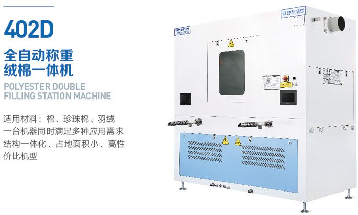 在雙口機型的基礎上升級成四口流量法機型,適用80-90g羽絨,填充范圍0.2-3g,主要針對國內部分內銷品牌企業的應用需求。