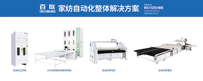 參展期間,百聯還將重磅推出“家紡自動化整體解決方案”這是百聯多年自主研發經驗積累、緊貼家紡領域客戶需求而提供的專業自動高效化整體解決方案,可以滿足羽絨被、枕芯、靠墊、睡袋等多種生產需求。