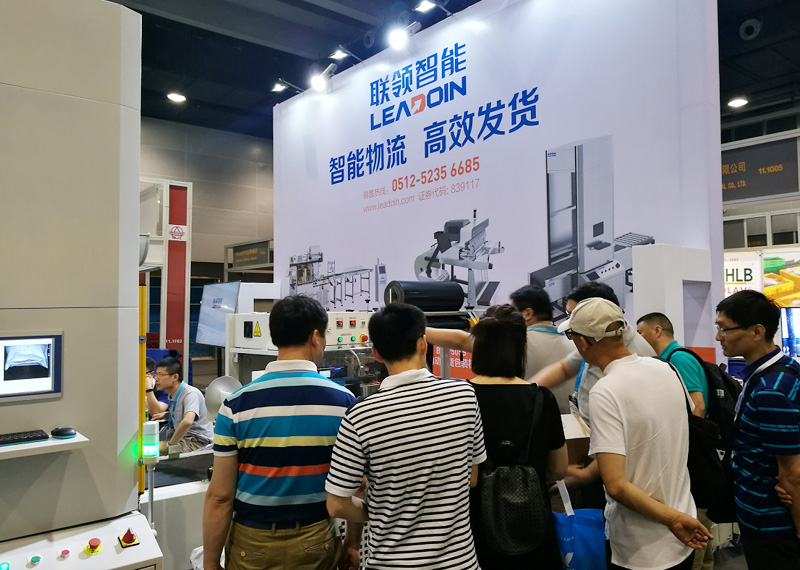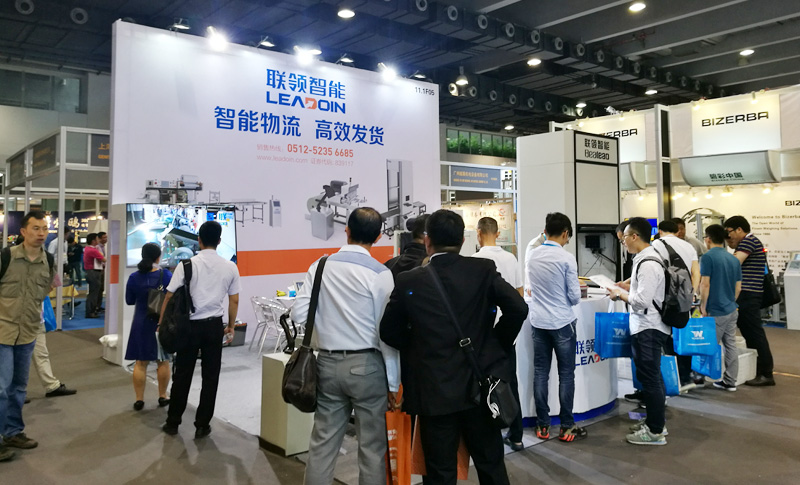 位于11.1館的聯領智能展位以實物和視頻演示的形式展示了新一代“打包機器人”的魅力。此次重點展示的自動發貨包裝機2種型號 ,可自動掃描并剔除異常訂單,自動打印及貼單,自動裁切封口,特別適用于服裝 、圖書、盒裝鞋類等中小物品的包裝物流需求,并提供了兩種無需購買、保證售后服務的“租賃”套餐供客戶選擇,受到現場客戶的積極關注,僅展會第二天就成功簽約2臺。
