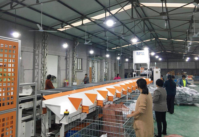 聯領智能分揀線,占地僅70平米,總功率8KW,分揀線設計合理,安裝便捷,一周可完成。每小時耗電量5KW,節約能源。