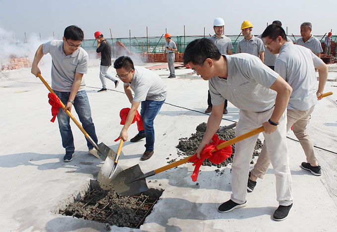 6月6日,常熟虞山高新技術產業開發區內,隨著我們公司高層揮鏟填入最后一塊混凝土,百聯“新建智能裝備生產項目”基地建筑主體正式“合龍門”,順利實現結構封頂!