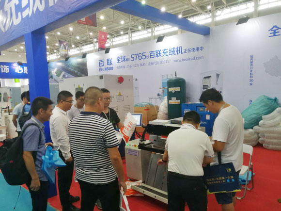 百聯一直重視參與以武漢為重點的華中紡織服裝產業轉型發展進程,以具有核心技術的纖維填充設備和高效的物流自動化解決方案為當地客戶提供所需的產品與服務。在本次展會期間,百聯主要展示了4401、2601、全新X機型、402D雙口絨棉一體機等升級版的充絨或充棉類設備,并針對當地電商的發展以及物流自動化的需要重點展示了505S型發貨包裝機。從現場反饋的情況看,這些產品滿足了當地用戶提高生產效率、促進生產升級的需求,受到了大家的積極關注。