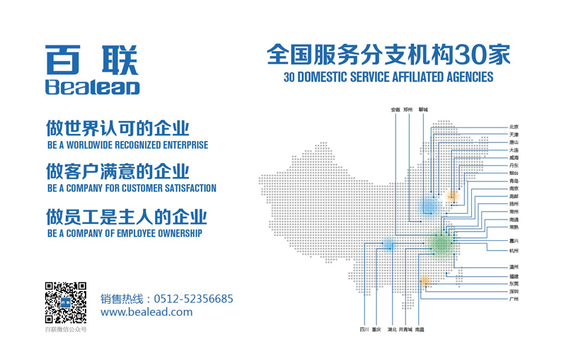 百聯已建立全國30多家的服務分支機構,定期都會要求各個區域的技術人員到總公司進行技術培訓,以保障整體售后的優質服務能力!客戶遇到日常問題可以聯系所在區域的服務點,或者撥打百聯全國服務熱線:0512-52330100,我們一定及時響應并以最快速度處理解決!