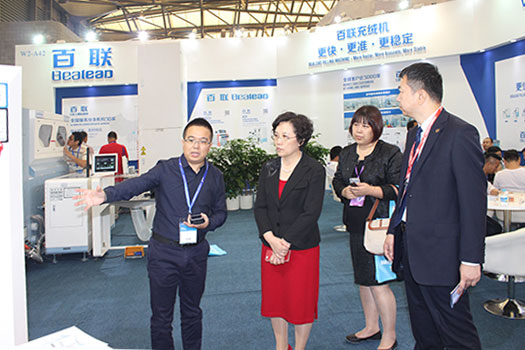展會剛開幕,中國縫制機(jī)械協(xié)會理事長何燁女士一行就親臨百聯(lián)展位指導(dǎo),對百聯(lián)近年取得的成績以及持續(xù)推進(jìn)全自動充絨機(jī)等產(chǎn)品發(fā)展給予了高度的評價與肯定.