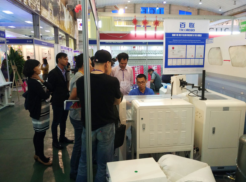 經(jīng)過幾年的市場培育,以越南為代表的東南亞市場客戶對百聯(lián)品牌及其產(chǎn)品的認可度顯著提高,其中不少客戶來自歐美、日韓等,在東南亞設(shè)廠。客戶認為,百聯(lián)充絨機“性能穩(wěn)定、智能高效,是客戶生產(chǎn)的得力助手”。此次展會期間,百聯(lián)的818B-S、2301型自動充絨機以及402B充棉機等系列產(chǎn)品以高品質(zhì)、優(yōu)性能得到了客戶的認可,展會期間現(xiàn)場簽約2臺818B-S,并達成了多種機型合計16臺的意向訂單.