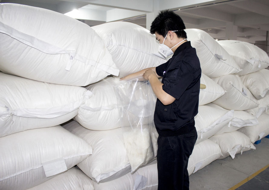 檢驗(yàn)不合格的羽絨,將會(huì)被退回工廠重新生產(chǎn)。