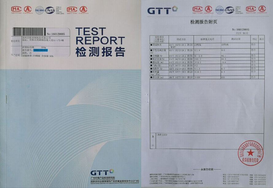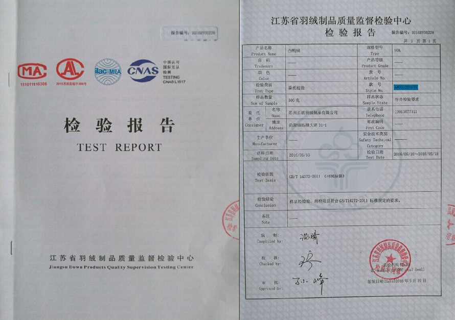 百聯(lián)分別委托江蘇省羽絨制品質(zhì)量監(jiān)督檢驗(yàn)中心、廣州纖維產(chǎn)品檢測(cè)研究院檢測(cè)并出具報(bào)告。只有兩份報(bào)告同時(shí)合格后才會(huì)入庫(kù);