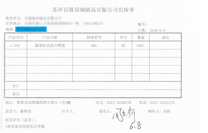 百聯(lián)羽絨所執(zhí)行的是批次號(hào)管理,質(zhì)量把關(guān)每一批次貨品。